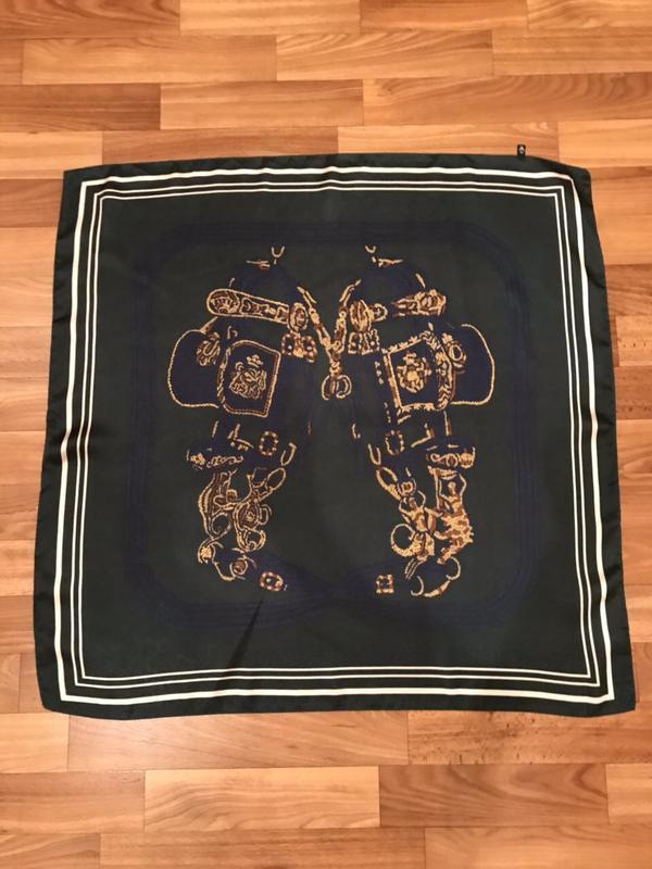 Стильний дизайн хустки в стилі Hermès. Стан дуже хороший, сліди шкарпетки мінімальні,кілька стетиков,в шкарпетці невидно взагалі. Розмір 79*70