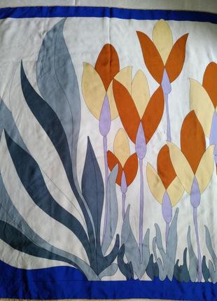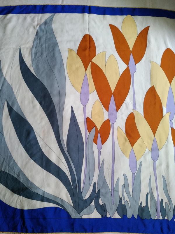 Жермен Емілі Кребс або мадам Гре – французький дизайнер, яка створювала одяг «від кутюр». Унікальний хустку від модного будинку мадам Грі GRES PARIS, оригінал, виробник Італія. Натуральний шовк. Акуратний шов роуль на лицьову сторону. Нюанс - у двох верхніх кутах є проколи від брошки (на фото збільшено!) у ціні враховано. Розмір: 85х83см.