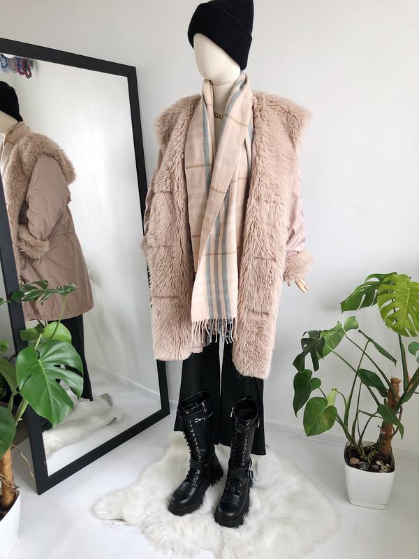 Ніжний ,легкий,теплий, затишний-широкий шарфик,малюнок-клітини-на пудровом,рожевому тлі-білі,бежеві,світло-зелені-смужки. Стан-новий,розмір-200 см-70см.