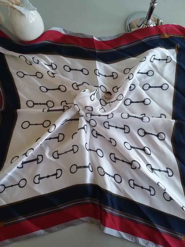 Хустка Розмір: 60*60см Склад: 100% поліестер. Їх можна пов'язати на голову, шию або прикрасити з їх допомогою сумку. Це допоможе не тільки освіжити образ, але іноді навіть захистити сумочку від потертостей та пошкоджень.