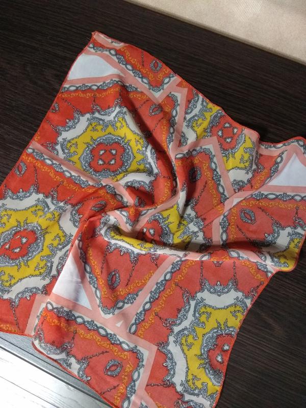⚠️ Минимальный заказ от 100 гривен. Данный товар можно купить только в купе с какой-то вещью. Небольшой платок размером 42 см 44 см, яркий, акцентный, не silk,может служить украшением на сумку, ткань напоминает шифон, без дефектов.