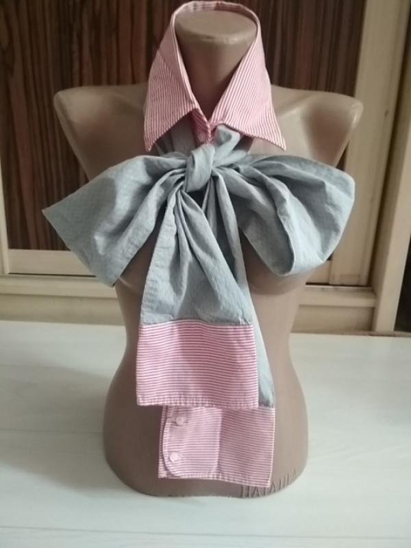 дуже цікавий шарф у вигляді комір від сорочки з рукавами.як доповнення до образу.або прикраса.тканина як у сорочках.