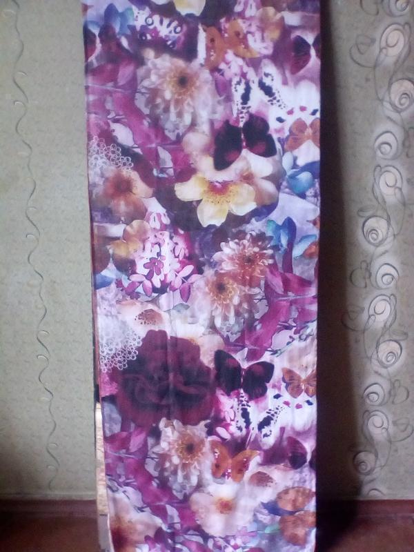 Bashidi шовковий шарф в принт квіти і метелики,шов роуль.