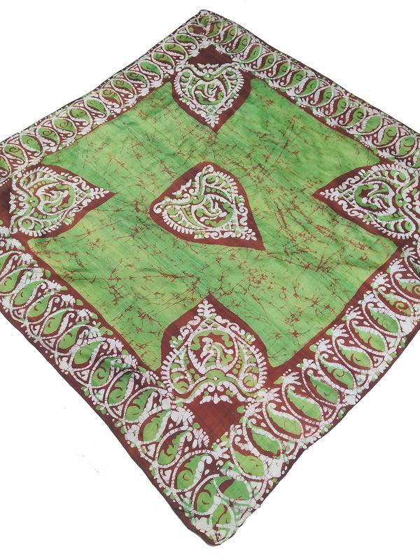 Салатовий шовковий хустку ручної роботи (88х89см)