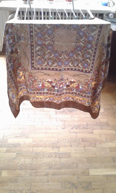 Вінтажний індійський шовковий коричневий хустку .Прінтованний індійськими мотивами .Розміри :85*85