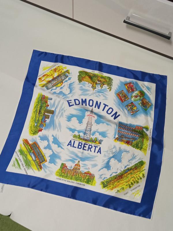 Хустка з серії "пам'ятки міста". Місто Едмонтон. розмір 65/65 див. 100% ацетат. Японія. можна використовувати як хустка, як аксесуар для волосся або як картину.