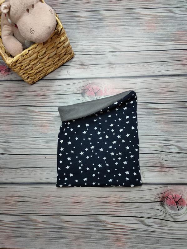 Двосторонній снуд : трикотаж з флісом . Зігріє вашого малюка в негоду. До снуду можна пошити і шапочку. Склад трикотажу : 92% бавовна, 8% еластан