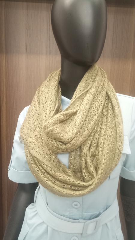 Шарф снуд- кол'ору (-хакі )з рюрексом ажурна в'язка, телефон не передане точний колор розмір 180-0.66см состав ,,,акріл, полієстр 👗стан новий 👍😀