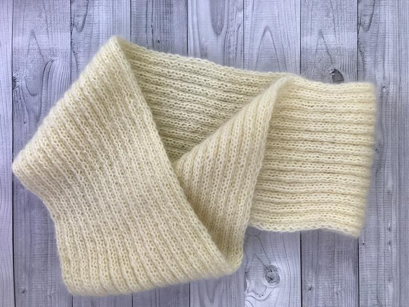 Снуд у два оберти, мохер шарфик молочний, теплий шарф хомут вісімка