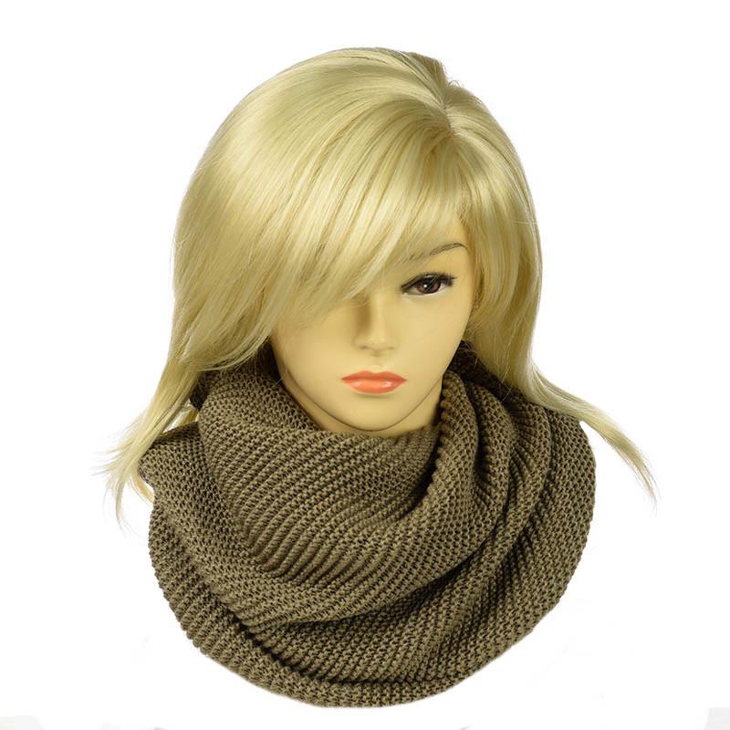 Жіночий шарф-снуд зшитий перекрутом у вигляді вісімки, що дуже зручно, оскільки відразу має необхідну об'ємну форму. Пов'язаний платочної в'язкої з м'якої акрилової пряжі з додаванням вовни. Одночасно служить і шарфом, і стильним аксесуаром для верхнього одягу. Зручний і практичний у повсякденному носінні.