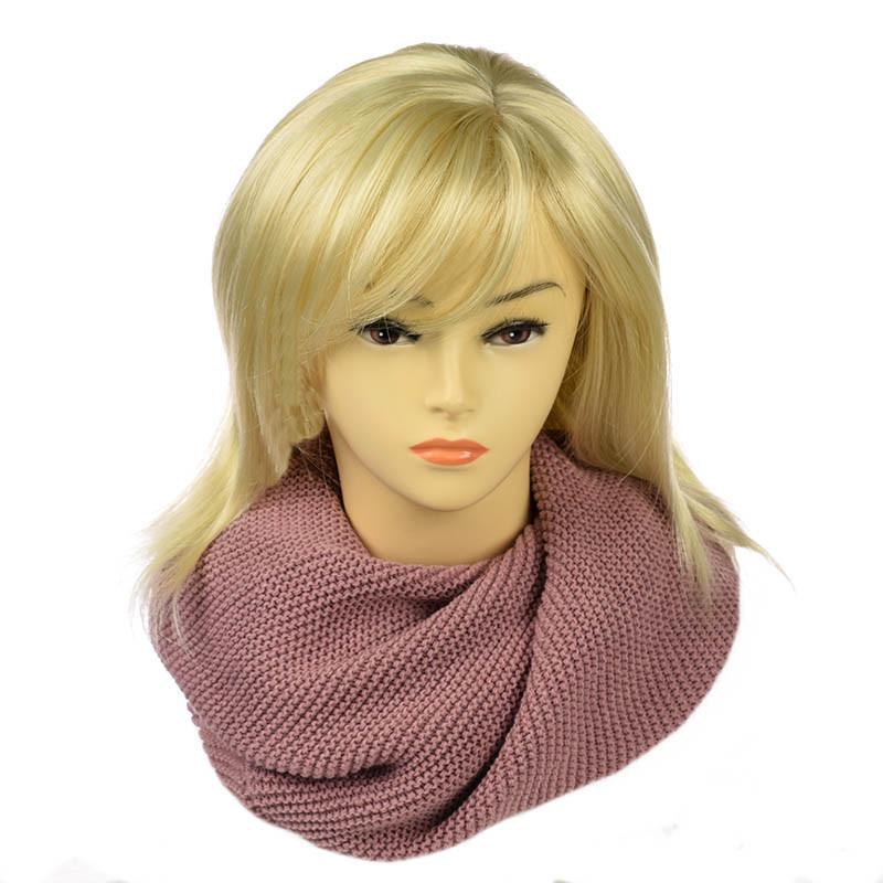 Женский шарф-снуд сшит перекрутом в виде восьмерки, что очень удобно, т. к. сразу имеет необходимую объемную форму. Связан платочной вязкой из мягкой акриловой пряжи с добавлением шерсти. Одновременно служит и шарфом, и стильным аксессуаром для верхней одежды. Удобен и практичен в повседневной носке.