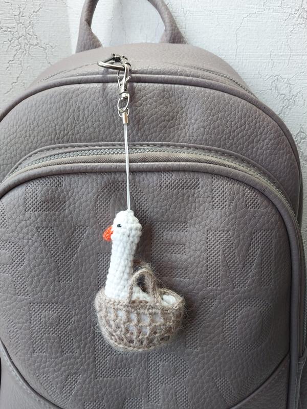 Гусь брелок, гусь вязаная мягкая игрушка подвеска, обвес на сумку резинка
