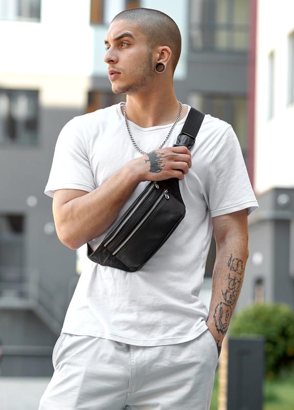 Сумочка з натуральної шкіри на пояс, бананка Sambag - чудовий варіант для людей, які стежать за модними тенденціями ✅ Переваги сумки на пояс Sambag: - виконана із натуральної шкіри; - міцна, надійна і практична підкладка, яка у свою чергу є водостійкою і зробленою з екологічно чистих матеріалів; - всередині три відділення, щоб зручно розділити телефон, ключі, гроші і різні дрібнички; - акуратний пошиття, всі рядки рівні, увага до деталей, навіть ті ж нитки європейського виробництва: тоненькі, міцні, а головне еластичні - вони не пошкоджують шкіру, як звичайні; - металевий бігунок з фіксатором, який надійно і плавно їздить на блискавці; - фастекс-застібка з міцного сучасного пластика - широкий вибір кольорів, варіацій фурнітури; - краща ціна на ринку у своєму сегменті. Встигни поповнити свій гардероб практичною новинкою 📐 Розмір 22х14см кишеню, 30.5х14 см в цілому Стандартно поставляється на охоплення по талії (через плече) від 91 см до 130 см: ремінь регулюється. Також є з короткими і довгими ременями. При замовленні в коментарі зазначте необхідну довжину ременя, якщо вона відрізняється від стандартної. 🚚 Відправляємо: Нова Пошта, УкрПошта, Джастін (безпечна угода, оплата на картку або поштою)