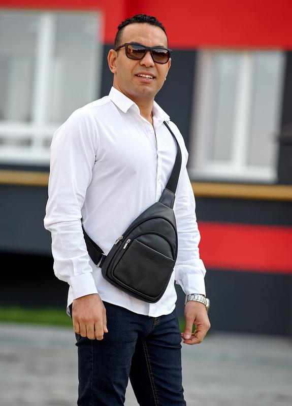 Сумка через плече, слінг Sambag Brooklyn чудово підійде для активних людей, в яких комфорт та практичність на першому місці Характеристики: Матеріал верха: натуральна шкіра. Шкіра водовідштовхуюча, стійка до вицвітання, еластична (не тріскає при експлуатації) та міцна на розрив. Підкладка. Матеріал оксфорд середньої щільності, міцний, стійкий до царапин, легко чиститься, нитки з нього не вилазять. Завдяки з'єднанню всіх частин підкладки між собою, навантаження на екошкіру зменшується і розподіляться рівномірно. Це продовжує термін служби шкіри та швів ззовні. Фурнітура. Блискавки типу YKK з надійного пластику. Бігунки металеві з фіксатором: сумка не відкриється самостійно від навантажень, а тільки рукою. Основне відділення на блискавці. Шлейки. Плечевий ремень з текстилю, надійно пришитий на планку по спинці. Приєднаний до боків шкіряними трикутниками. Довжина регулюються за допомогою металевого регулятора. Функціоналість. Ззовні спереду сумки дві кишені на блискавці та одна на магніті. Всередині сумки кишеня на блискавці та одна відкрита кишеня. Стандартно поставляється від 86 см до 123 см: ремінь регулюється. При замовленні в коментарі зазначте необхідну довжину ременя, якщо вона відрізняється від стандартної. Розмір: 29*19*6 см. Артикул: 83111101wm