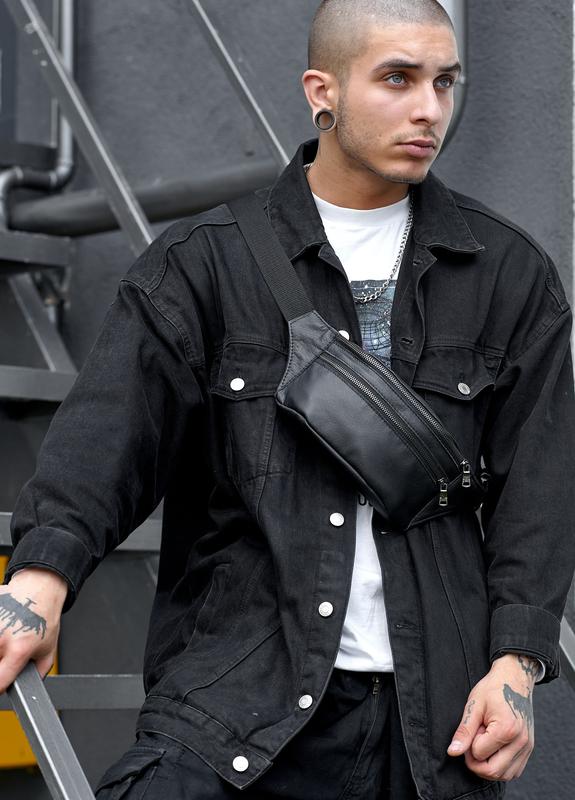Сумка на пояс бананка шкіряна sambag tirso btt чорнa