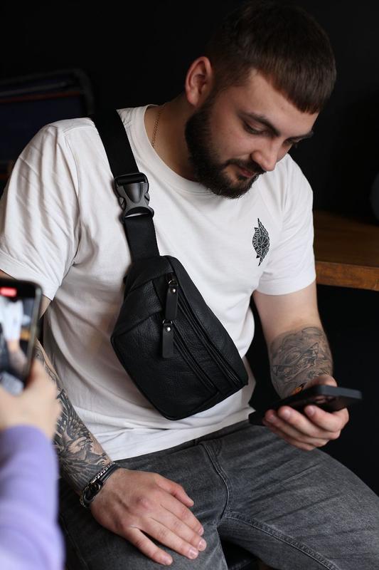 ✖️ Бананка з натуральної шкіри✖️ • Артикул #SL007 • Матеріал – натуральна шкіра • 2 передні кишені на блискавці • Міцна габардинова підкладка • Регульований ремінець • Розмір: 11*25*7 см