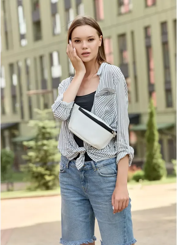 Сумочка на пояс бананка Sambag Tirso – твій ключ до свободи руху. Сумка на пояс, через плече – невід'ємний атрибут активних людей Вона зручна, містка і, як наслідок, практична Характеристики: Матеріал верху: найновіша екошкіра підвищеного рівня зносостійкості (не менше 50 000 циклів за тестом Мертіндейла). Шкіра водовідштовхувальна, стійка до вицвітання, еластична (не тріскається при експлуатації) та міцна на розрив. Підкладка. Матеріал оксфорд середньої густини, міцний, стійкий до подряпин, легко чиститься, нитки з нього не вилазять. Завдяки з'єднанню всіх частин підкладки між собою навантаження на екошкіру зменшуються і розподіляється рівномірно. Це продовжує термін служби шкіри та швів. Фурнітура. Блискавки типу YKK із надійного пластику. Бігунки з фіксатором: сумка не відкриється самостійно від навантажень, а лише рукою. Основне відділення на блискавці. Фастекс-застібка із міцного сучасного пластику. Шлейки. Плечовий ремінь із текстилю, надійно пришитий на планку по спинці. Приєднаний до боків шкіряними трикутниками. Довжина регулюється пластиковим регулятором. Функціональність. Усередині сумки окремо одне відділення, яке поділено на кілька кишень. Зовні на спинці сумки одна кишеня на блискавці. Стандартно поставляється на обхват по талії (через плече) від 86 см до 123 см: ремінь, що регулюється. При замовленні у коментарі вкажіть необхідну довжину ременя, якщо вона відрізняється від стандартної. Розмір: кишені бананки 22х12х4 см, а довжина з "вушками" з боків 30,5 см.