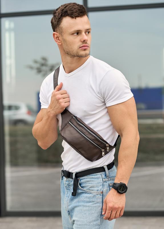 Чоловіча сумка на пояс бананка шкіряна sambag tirso bts натуральна коричнева шкіра