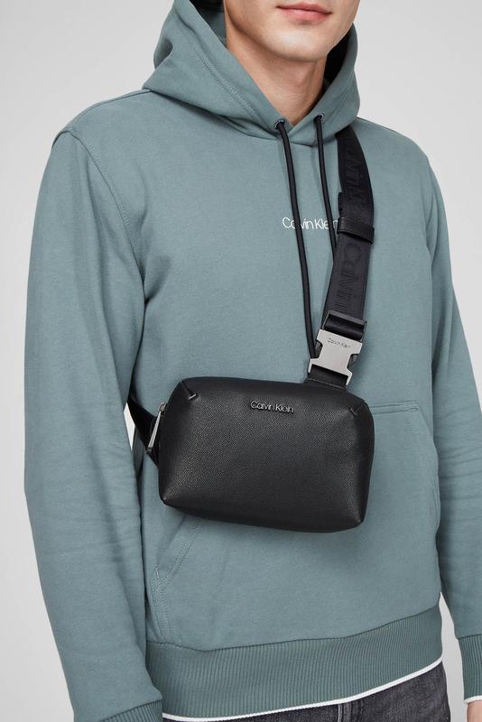 Сумка Calvin Klein Оригінал! Нова! Опис: Колір: чорний Застібка: блискавка Відділення/кишені (внутрішні): одне відділення Декор: логотип Розмір: 19х12,5х4,5 см Одна незнімна регульована ручка висотою 50 см Склад: Внутрішня підкладка: 100% перероблений поліестер Склад: 100% поліуретан