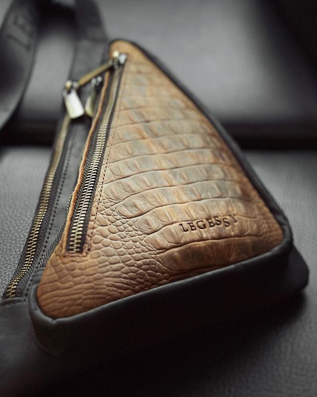Мужской кожаный слинг crocodile бананка