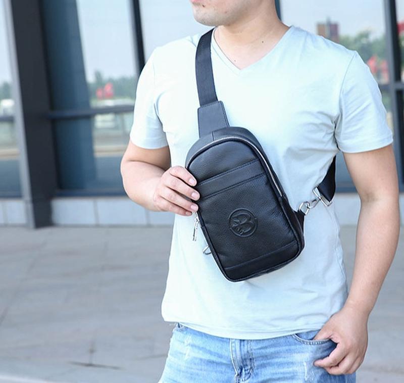 Шкіряна чоловіча бананка сумка нагрудна feidikabolo сумка бананка кросбоді з натуральної ш...