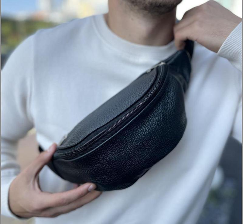 ХАРАКТЕРИСТИКА: Шкіряна бананка сумка чорного кольору – стильний та функціональний аксесуар. 2 зручні кишені на замочках для безпечного та легкого доступу до ваших речей. Розмір: 30 см (ширина) x 20 см (висота) x 7 см (товщина). Використовується флотар шкіра з Італії та металева фурнітура для надійності та довговічності використання. М’яка та приємна на дотик шкіра забезпечує комфорт при використанні. Компактний дизайн дозволяє брати її з собою у будь-яких подорожах або повсякденних справах.