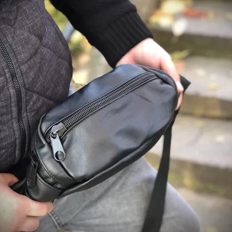 Бананка шкіряна універсальна текстурна, чоловіча бананка з натуральної шкіри, сумка для то...