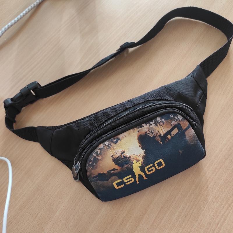 Дитяча сумка на пояс бананка на два відділа чорна з принтом cs go