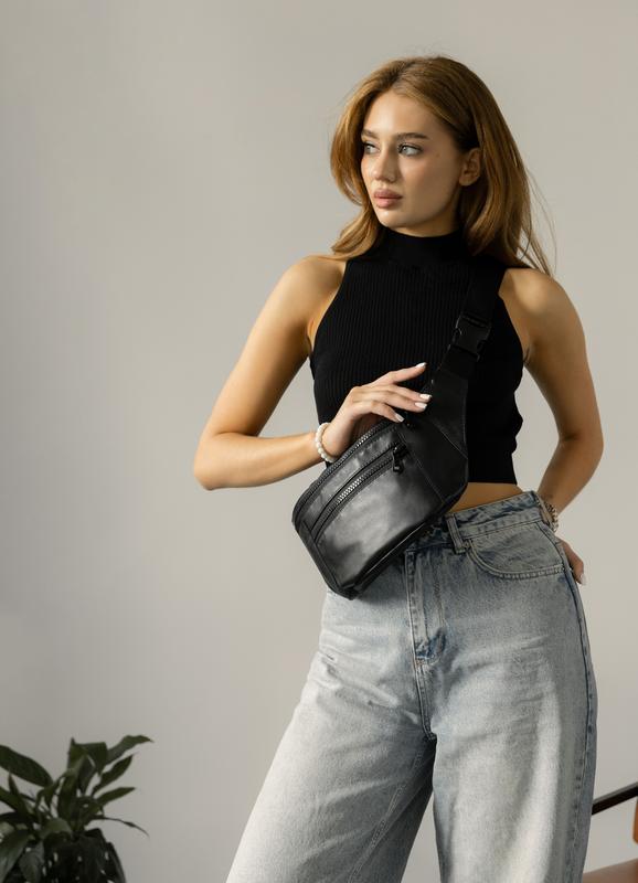 Большая женская кожаная сумка на пояс бананка sambag tirso max черная