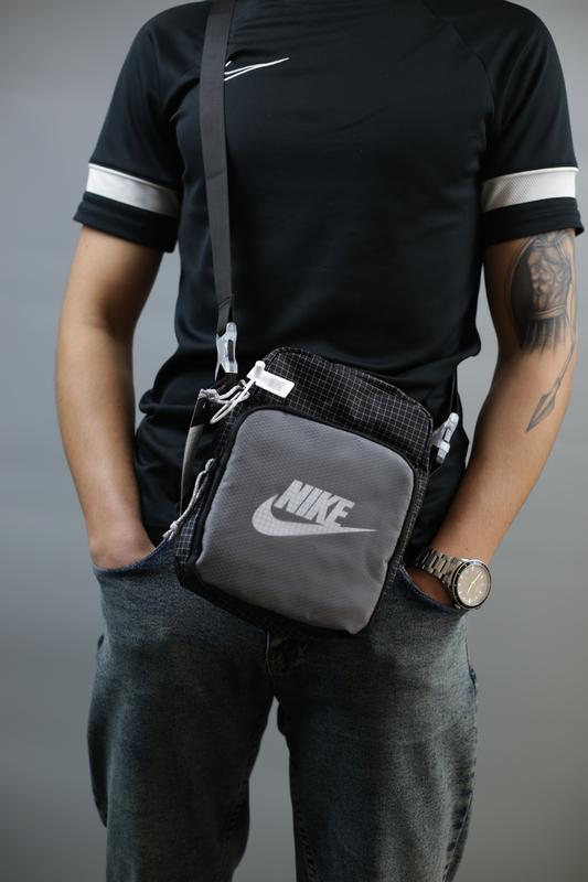 Сумка Nike Характеристики: - Колір: сіро-чорний - Розмір: 24×18,5×9 см - Одне основне відділення на замку із внутрішньою кишенею - Передня випукла кишеня на замку - Знімний ремінець із застібкою фастекс: максимальна довжина 114 см, мінімальна довжина 61 см, ширина 3,5 см - Якісний принт Відправляю шафою доставкою або за вашими даними, якщо залишилися питання пишіть в приватні повідомлення) Також в профілі є багато різних сумок/рюкзаків/барсеток