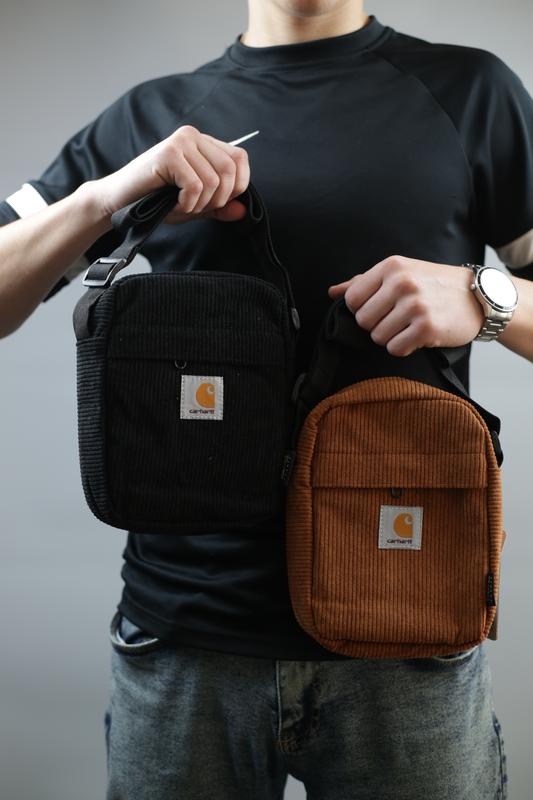 Сумка Carhartt Характеристики: - Розмір: 20×14,5×6 см - Колір: коричневий, синій, чорний - Одне основне відділення на замку з двома бігунками з внутрішньою кишенею-сіткою - Передня кишеня на замку - Незнімний регульований ремінець Відправляю шафою доставкою або за вашими даними, якщо залишилися питання пишіть в приватні повідомлення) Також в профілі є багато різних сумок/рюкзаків/барсеток
