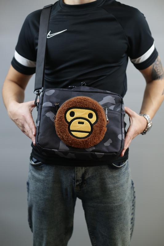 Сумка Bape Характеристики: - Розмір сумки: 25×20×6 см - Розмір гаманця: 15,5×15,5×1,5 см - Одне основне відділення на замку з двома бігунками та має внутрішню кишеню на замку - Знімний регульований ремінець з карабіном: максимальна довжина 123 см, мінімальна довжина 64,5 см, ширина 3 см - Передня кишеня до котрої можна прикріпити гаманець прищіпками Відправляю шафою доставкою або за вашими даними, якщо залишилися питання пишіть в приватні повідомлення) Також в профілі є багато різних сумок/рюкзаків/барсеток