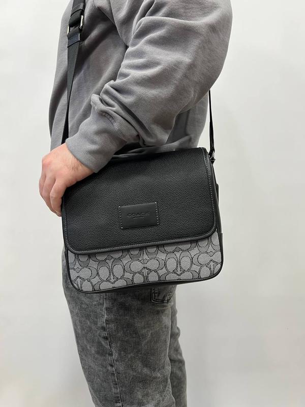 Сумка виготовлена з текстурної шкіри та щільного текстилю з фірмовим лого. Закривається на магніти, які приховані під шкірою. Всередині одне велике відділення та кишеня на застібці із шкіряною нашивкою. Також дві невеличкі кишені на лицьовій стороні всередині сумки. Підкладка з щільного та якісного текстилю. Фурнітура металева, брендована. Ремінець для носіння через плече - текстильний, регулюється за довжиною.