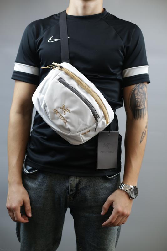 Сумка arcteryx Характеристика: - Колір: білий - Розмір: 18×25×6,5 см - Одне основне відділення з внутрішнім відділенням та кишенею на замку - Передня кишеня на замку з карабіном на стрічці - Фурнітура YKK - М'яка задня стінка з внутрішньою кишенею - Незнімний ремінець з карабіном та гумкою для фіксації: максимальна довжина 113 см, мінімальна довжина 24 см, ширина 2,5 см - Вишитий логотип Відправляю шафою доставкою або за вашими даними, якщо залишилися питання пишіть в приватні повідомлення) Також в профілі є багато різних сумок/рюкзаків/барсеток