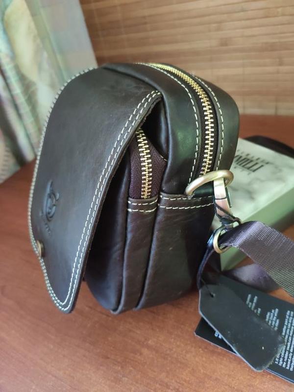 Сумка- Барсетка чоловіча. Натуральна шкіра. Товста та м'яка. Чудова якість. Приємна на дотик. Колір — Dark Brown (Темно Коричнева) Розмір 20/16/8 Невелика, зручна для носіння невеликої кількості необхідної. Документи, телефон, паспорт, картки, візитки, гроші, ключі тощо. Для тих, кому незручно носити велику сумку, а необхідно взяти тільки необхідну. Два незалежні відділення. Обидва на змійках. Одне на весь розмір сумки, Друге менше. Ремінь для носіння через плече знімний на вербаринах. Кріплення ззаду сумки для носіння на ремені штанів. Чудова фурнітура. Металеві змійки. Чудова ідея на подарунок Є інші варіанти (див. у своїх оголошеннях).