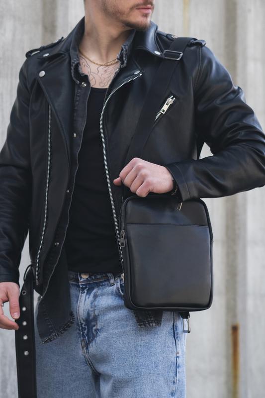 Чоловічий шкіряний чорний месенджер сумка metal сrocodile