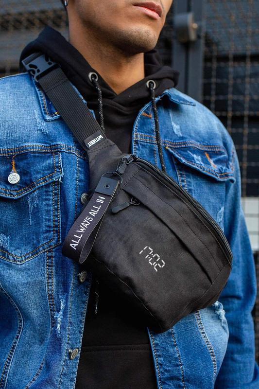 Чоловіча сумка бананка барсетка через плече without з принтом 1702 black