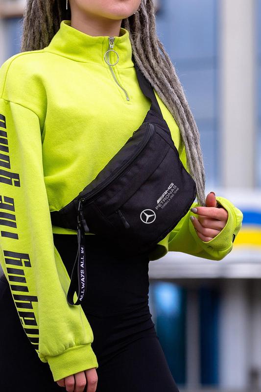 Жіноча сумка бананка барсетка через плече without з принтом amg black