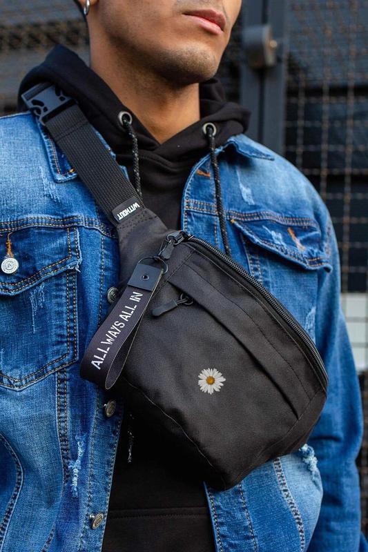 Чоловіча сумка бананка барсетка через плече without з принтом flower black