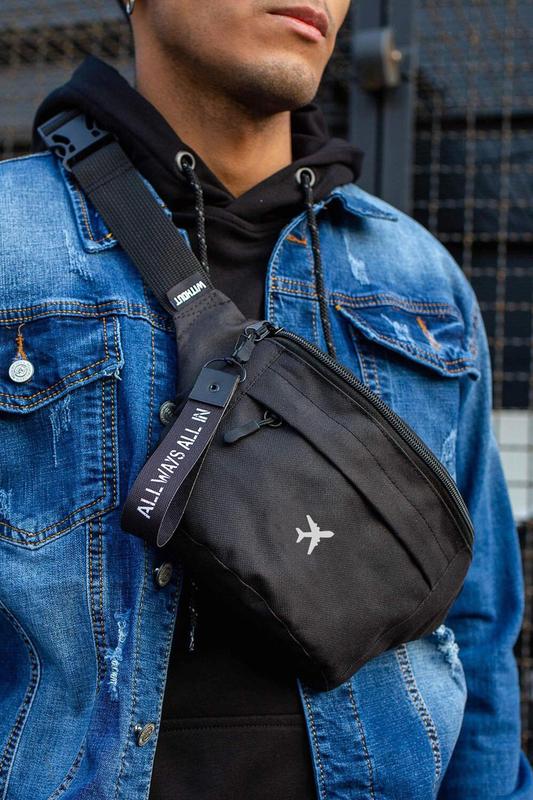 Чоловіча сумка бананка барсетка через плече without з принтом plane black