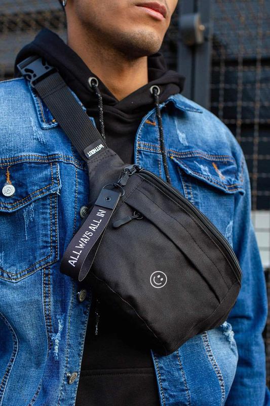 Мужская сумка бананка борсетка через плечо without с принтом smile black