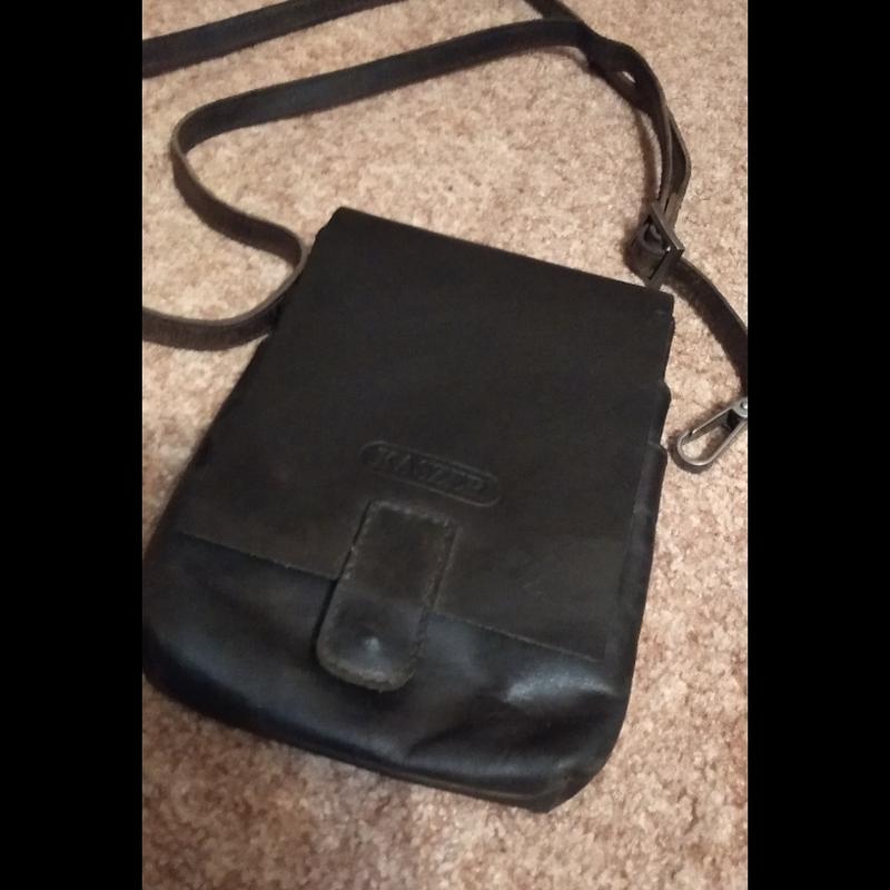 Барсетка Kaszer із натуральної шкіри коричньового кольору. Чотири відділення. Розмір 15х22х4см., ремінець довжина 140см., ширина 1,5см.