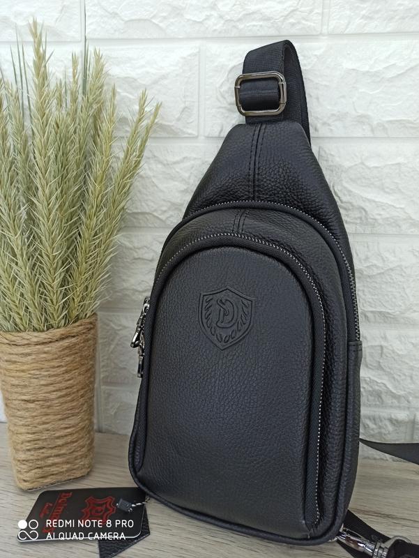 Современная кожаная сумка мужская через плечо! Пошита из качественной натуральной кожи!Установлена дорогая массивная фурнитура цвета тёмный хром!Металлическая молния,дорогие бегунки!Сумка имеет регулируемый ремень до 140 см.Размер сумки высота 31 см.ширина 16 и глубина 5 см.Ремень можно переставить как на левую так и на правую сторону!