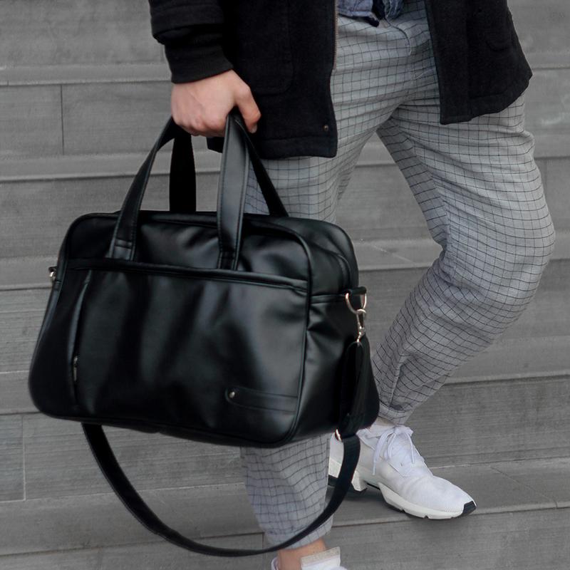 РОЗМІРИ: Висота – 30 см Ширина – 50 см Глибина – 20 см ХАРАКТЕРИСТИКА: Матеріал – еко шкіра Якісна фурнітура (Європейська) Міцний довговічною матеріал; 4 місткі кишені; Два замку на основному відділенні Кріплення для валізи; Професійне пошиття! В середині кишеню під ноутбук; Посилені лямки і конструкція; Сумка тримає форму; Плечовий ремінь в комплекті. унісекс