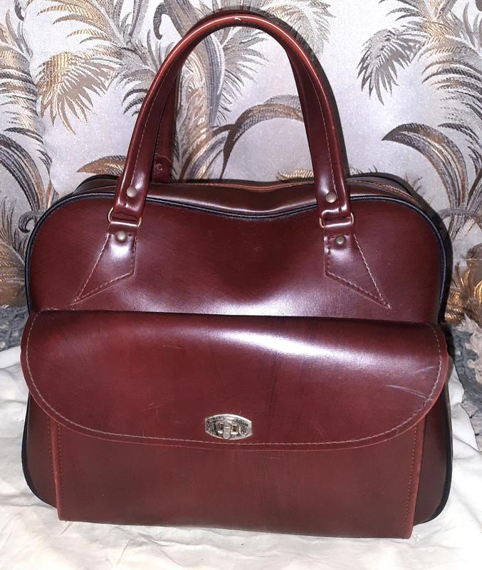 Вінтажна коричнева шкіряна дорожня сумка саквояж радянських часів 70-х років