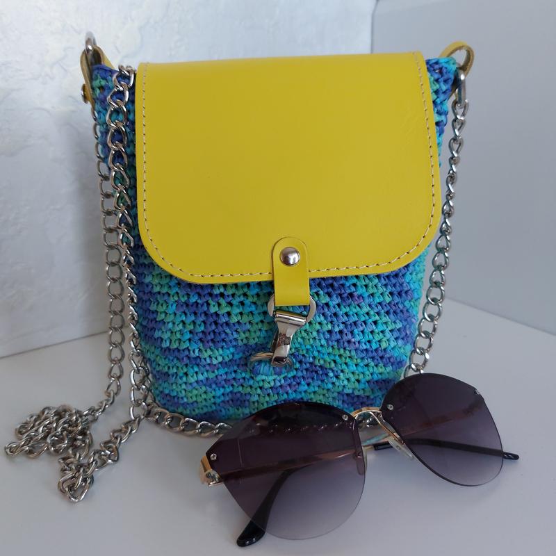 Сумочка ручної роботи, зв'язку пов'язана з рафії та шкіряна фурнітура. Зручна , легка, стильна. у таку сумочку поміститися все що Вам потрібно для прогулянки.