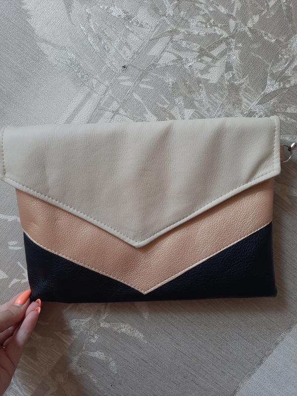 Клатч конверт трехцветный, на магнитной кнопке. Идеальный , универсальный Размер 27х 20 см