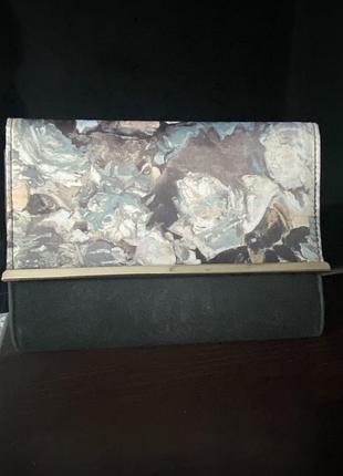 Чорний клатч зі штучної замші і абстрактним малюнком на гладенькій тканині. New look. Розмір 23х28см. Має всередині кишеньку.