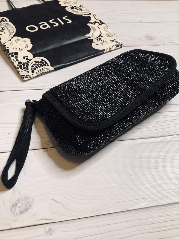 Дуже гарний клатч від англійського бренду Oasis з лімітованої колекції.Купувала в офіційному магазині. Розшитий бісером,виглядає дуже святково. ✔️Колір-чорний ✔️бісер,атлас і мікровельвет ✔️В середині є карман на блискавці. ✔️розмір-25х13 📌Переходьте на мою сторінку,в наявності багато гарних моделей. 💰Ціна-350грн 🚛Відправлення Нова пошта,Укрпошта