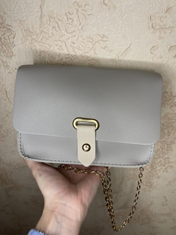 Не велика сумка сірого кольору, одне відділення, золотий ланцюжок, на магніті.